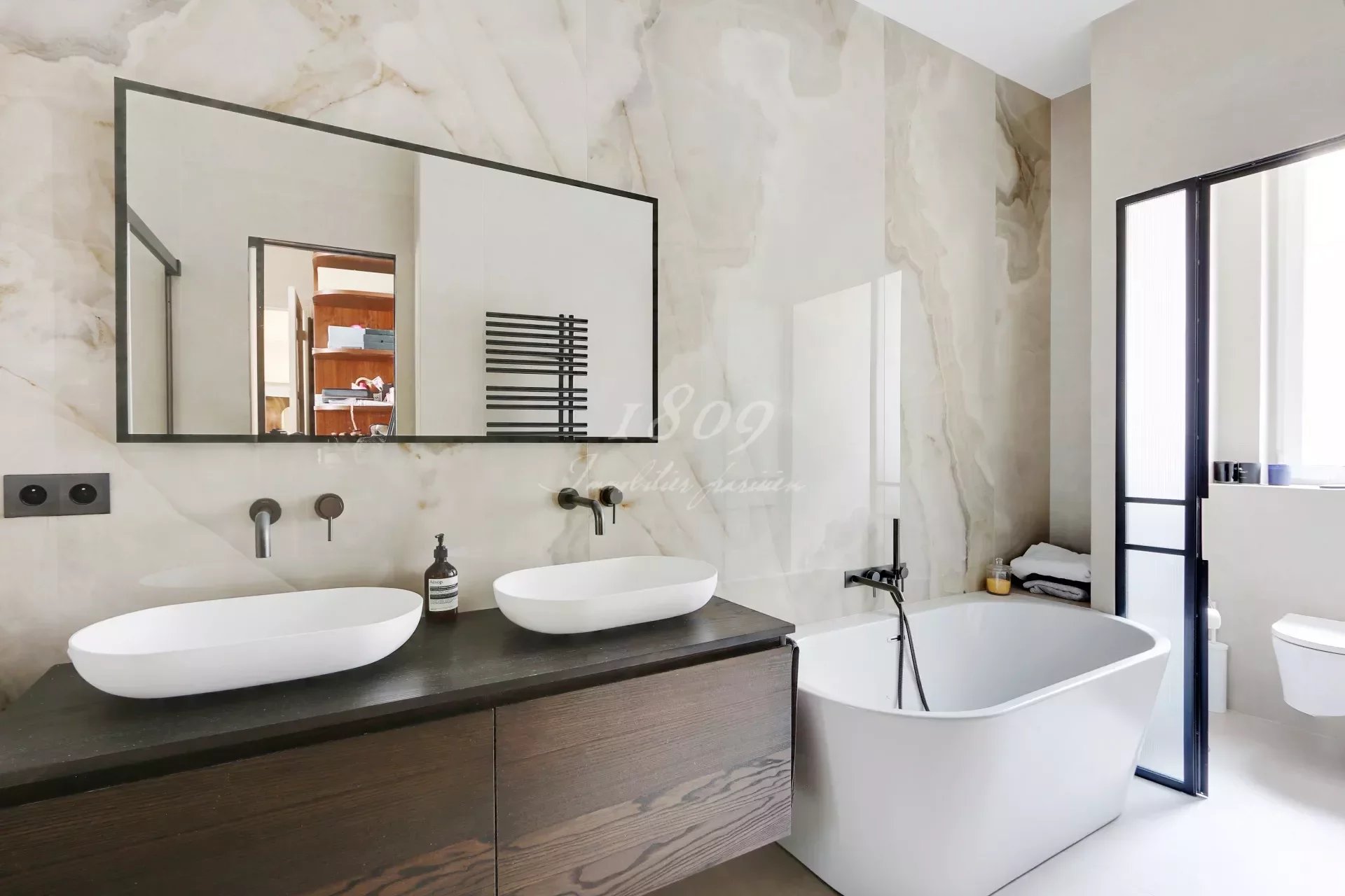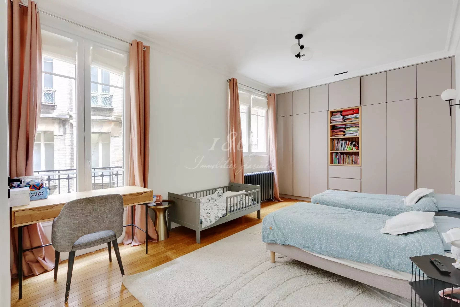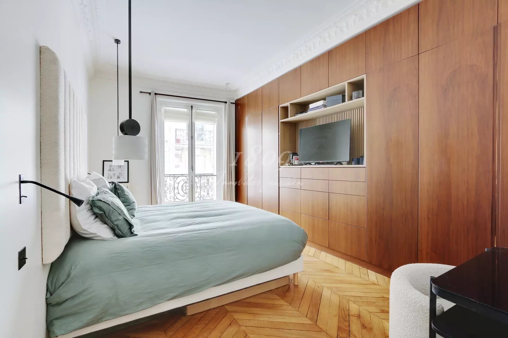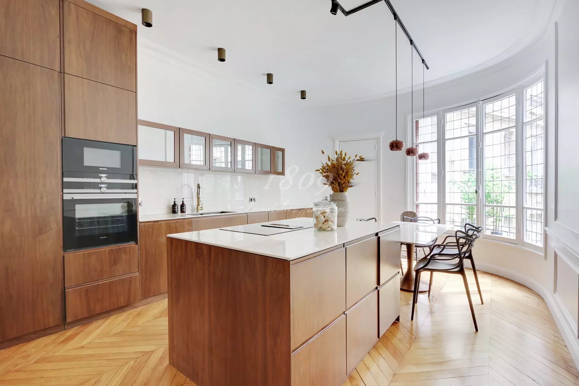 75016 Paris. We offer for sale in the immediate vicinity of Square Lamartine in a very beautiful old freestone building on the 1st floor by elevator, an elegant family apartment of 181.20 m2 Carrez law, completely renovated in a modern style.