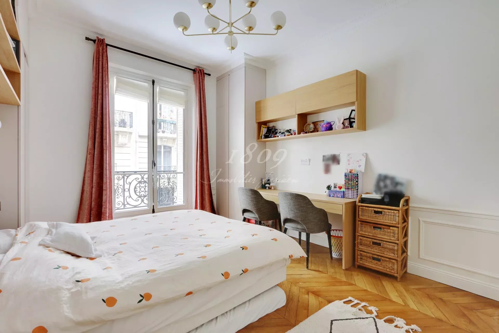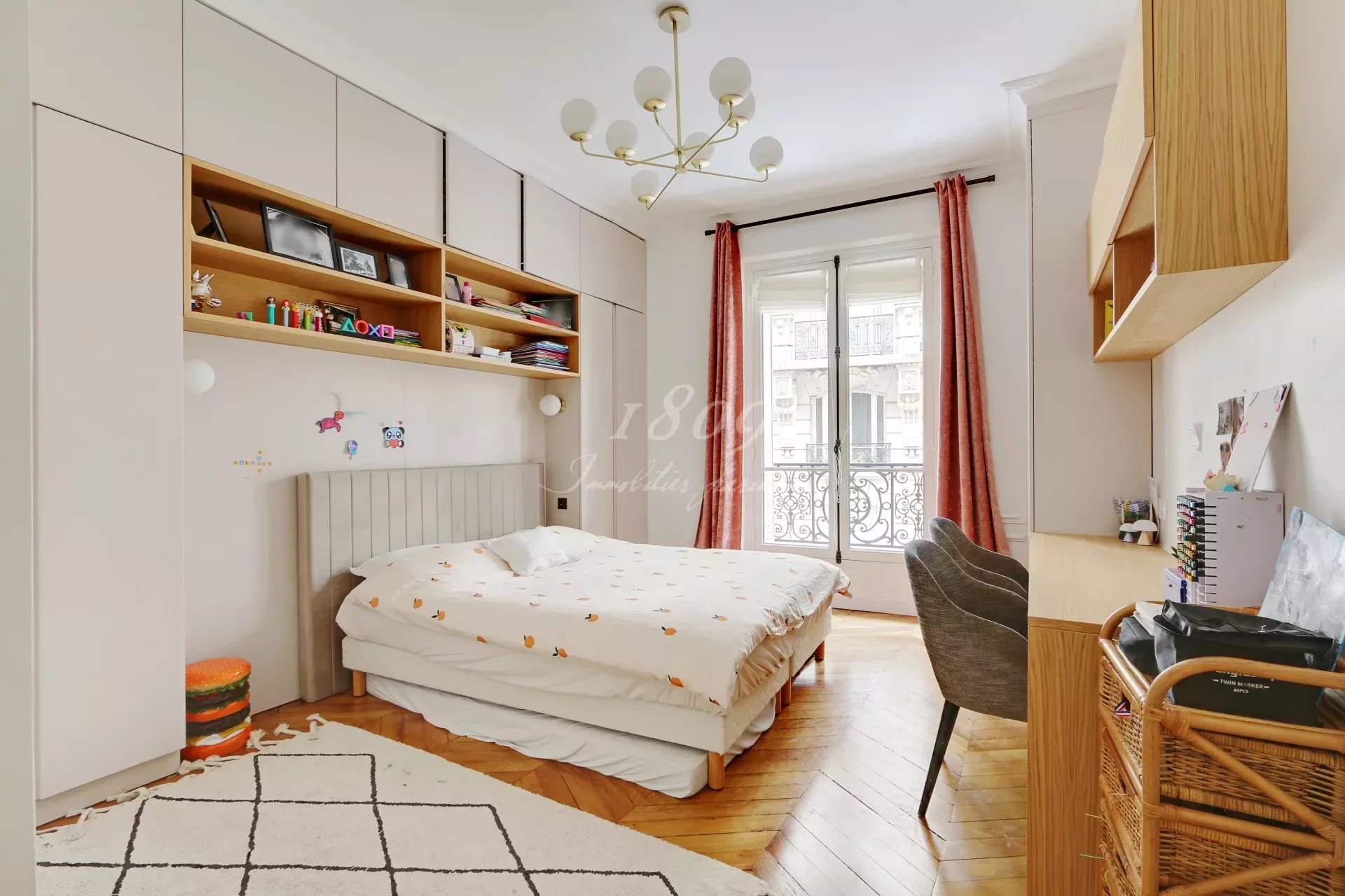 This typical Haussmannian property benefits from beautiful volumes with more than 3m of ceiling height. Parquet floors, and fireplace and is composed as follows: