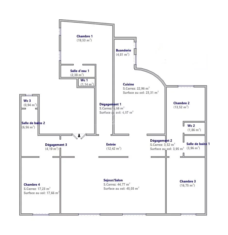 • « Carrez » act 198 m²